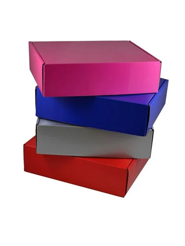 Colored corrugated boxes are packaging boxes made of corrugated cardboard that have been printed or dyed with various colors to add a decorative or branding element to the packaging. Corrugated cardboard is made of three layers of paper: an inside liner, an outside liner, and a corrugated medium in between the liners.